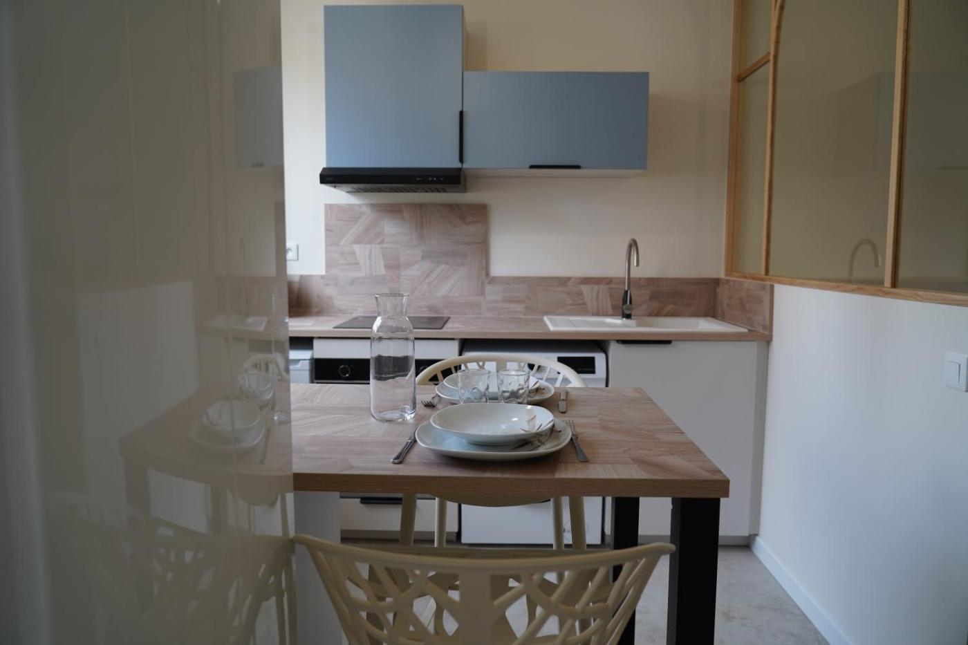 Appartement 1 Chambre. The fully equipped kitchen has a stovetop, a refrigerator, kitchenware and an oven. Boasting a balcony, this apartment also features a washing machine, a private entrance and a flat-screen TV. The unit has 1 bed.