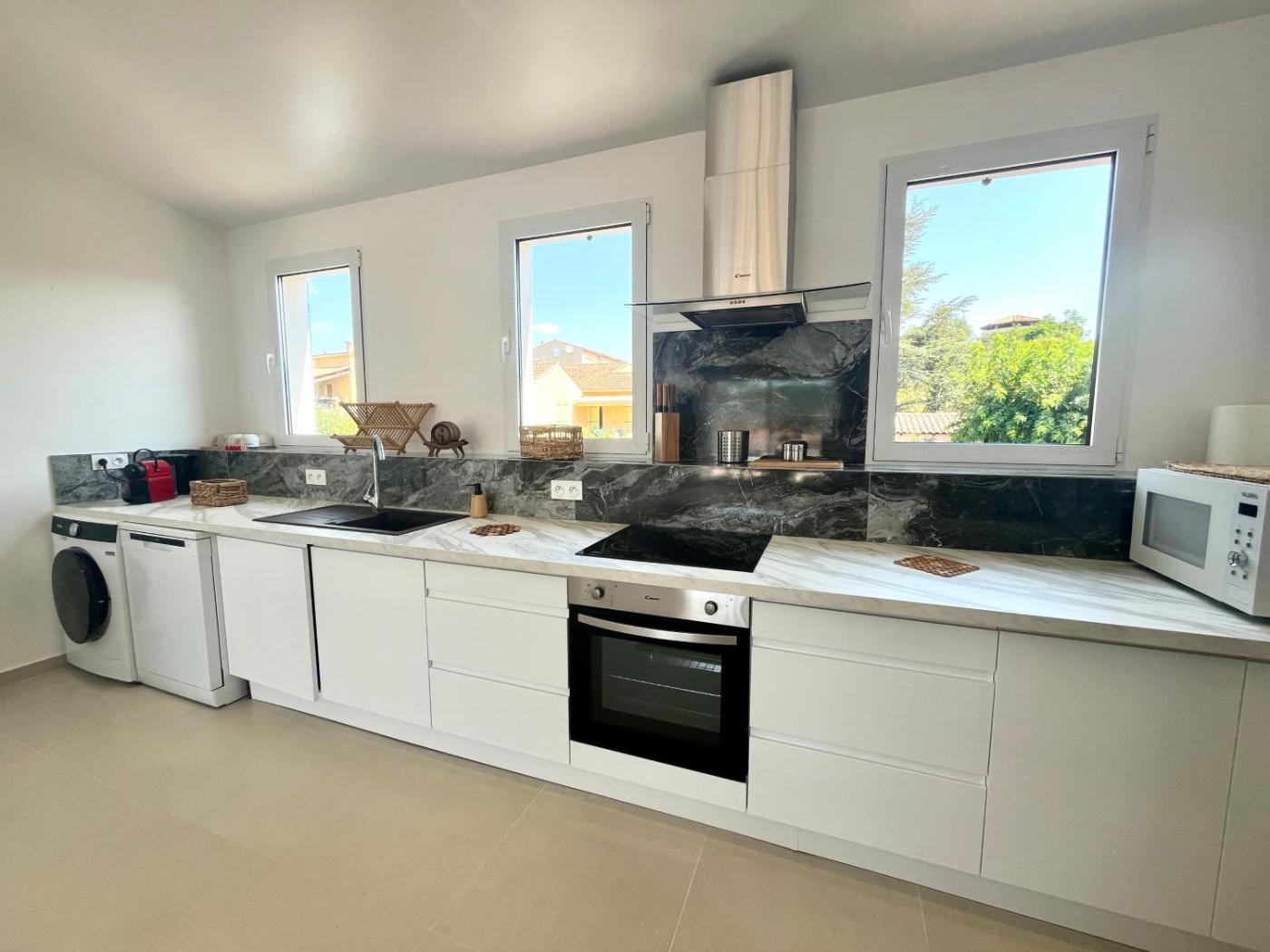 Appartement 2 Chambres avec Terrasse. Boasting 2 bedrooms, this spacious apartment has 2 bathrooms with a walk-in shower, a seating area and terraceyou can relax. Meals can be prepared in the kitchen, which features a stovetop, a refrigerator, a dishwasher and kitchenware. The air-conditioned apartment features a flat-screen TV with streaming services, a washing machine, a private entrance, soundproof walls as well as mountain views. The unit offers 2 beds.