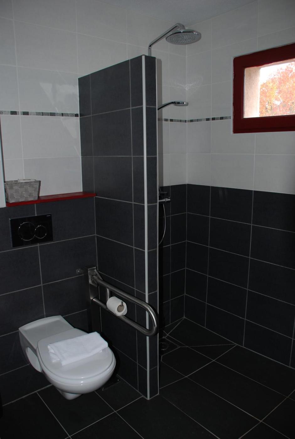 Chambre Lits Jumeaux pour Personnes à Mobilité Réduite. Cette chambre lits jumeaux dispose dune grande salle de bains avec une douche à litalienne et des toilettes avec une main courante. Vous disposerez également d’une bouilloire électrique.