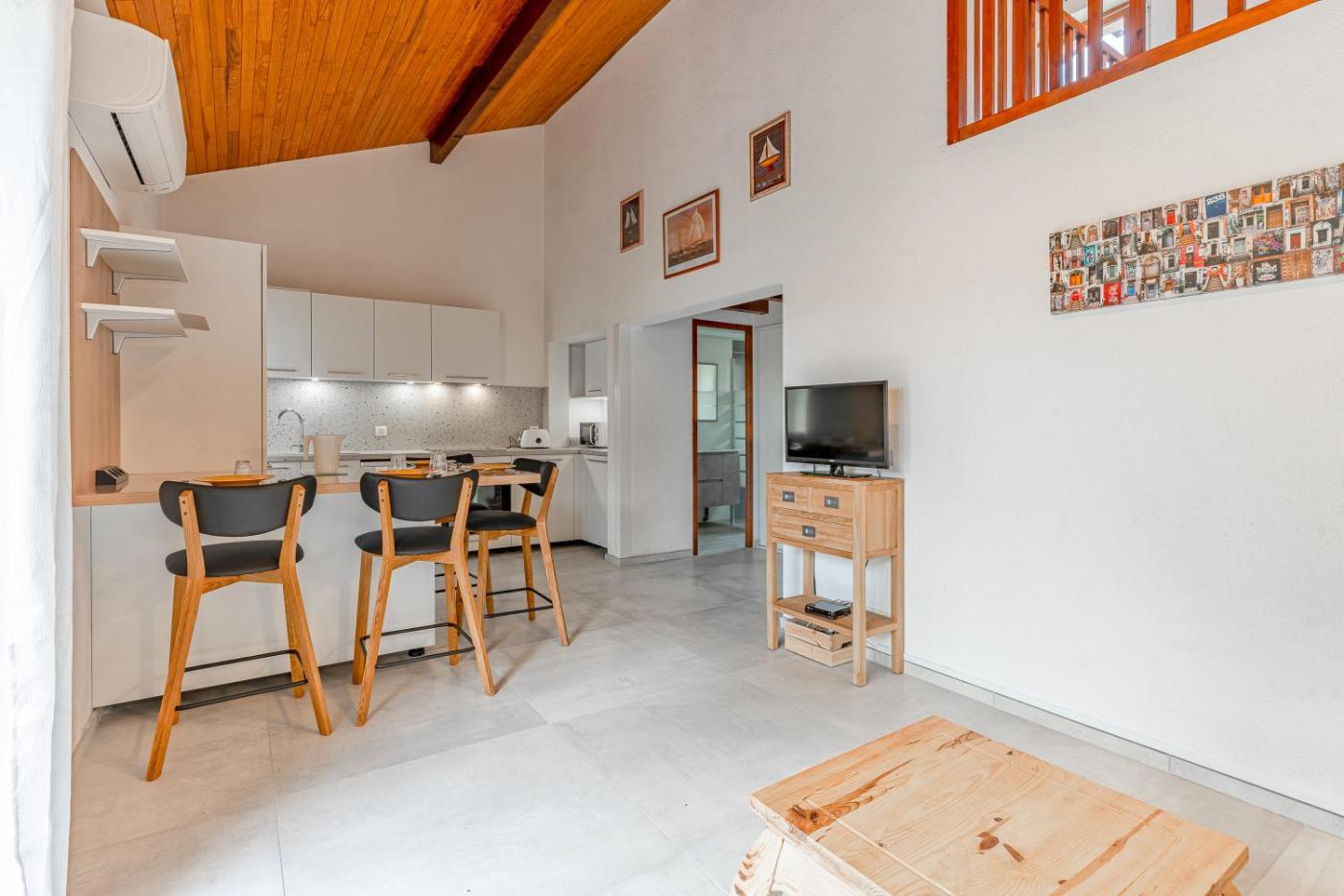 Maison 2 Chambres. Boasting a private entrance, this air-conditioned holiday home includes 1 living room, 2 separate bedrooms and 1 bathroom with a shower and a hairdryer. Guests will find a dishwasher, kitchenware, an oven and a microwave in the fully equipped kitchen. The holiday home also features a barbecue. Featuring a balcony with garden views, this holiday home also offers a washing machine and a TV with satellite channels. The unit has 4 beds.
