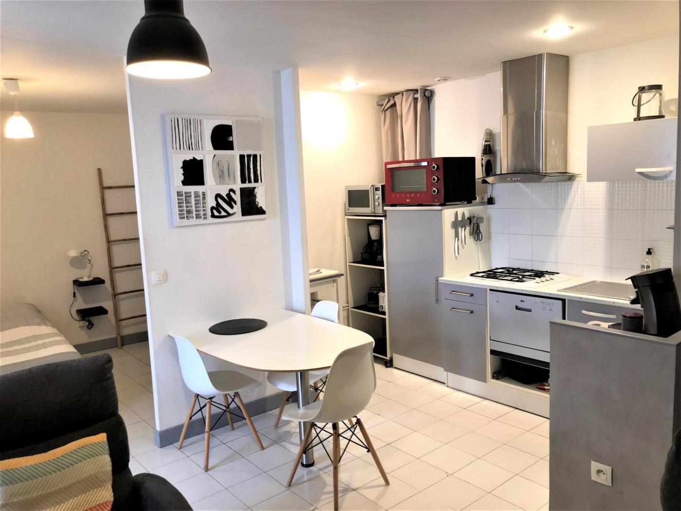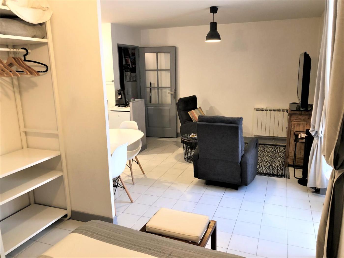 Appartement 1 Chambre - Vue sur Jardin. This apartment includes 1 living room, 1 separate bedroom and 1 bathroom with a shower and free toiletries. In the well-fitted kitchen, guests will find a stovetop, a refrigerator, kitchenware and a microwave. The apartment has parquet floors, a seating area with a flat-screen TV, a washing machine, a tea and coffee maker as well as a quiet street view. The unit has 2 beds.