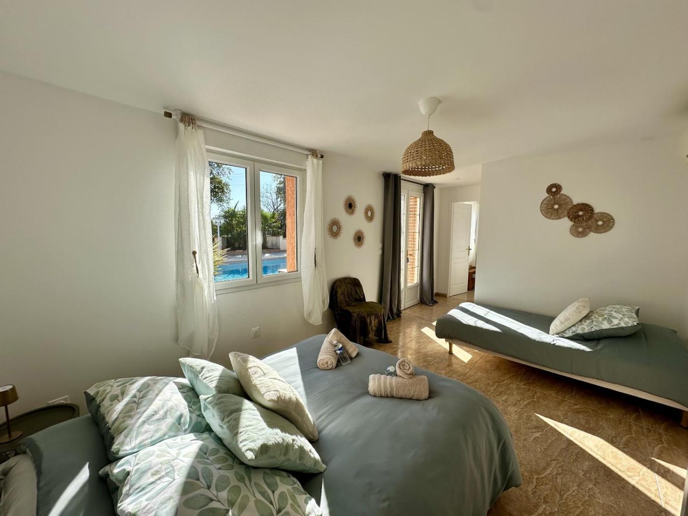 Maison 2 Chambres. The private pool and hot tub are the standout features of this holiday home. Boasting a private entrance, this air-conditioned holiday home features 2 living rooms, 2 separate bedrooms and 1 bathroom with a shower and a hairdryer. Guests will find a stovetop, a refrigerator, a dishwasher and kitchenware in the fully equipped kitchen. The holiday home also comes with a barbecue. Featuring a terrace with garden views, this holiday home also features a washing machine and a flat-screen TV with streaming services. The unit has 3 beds.