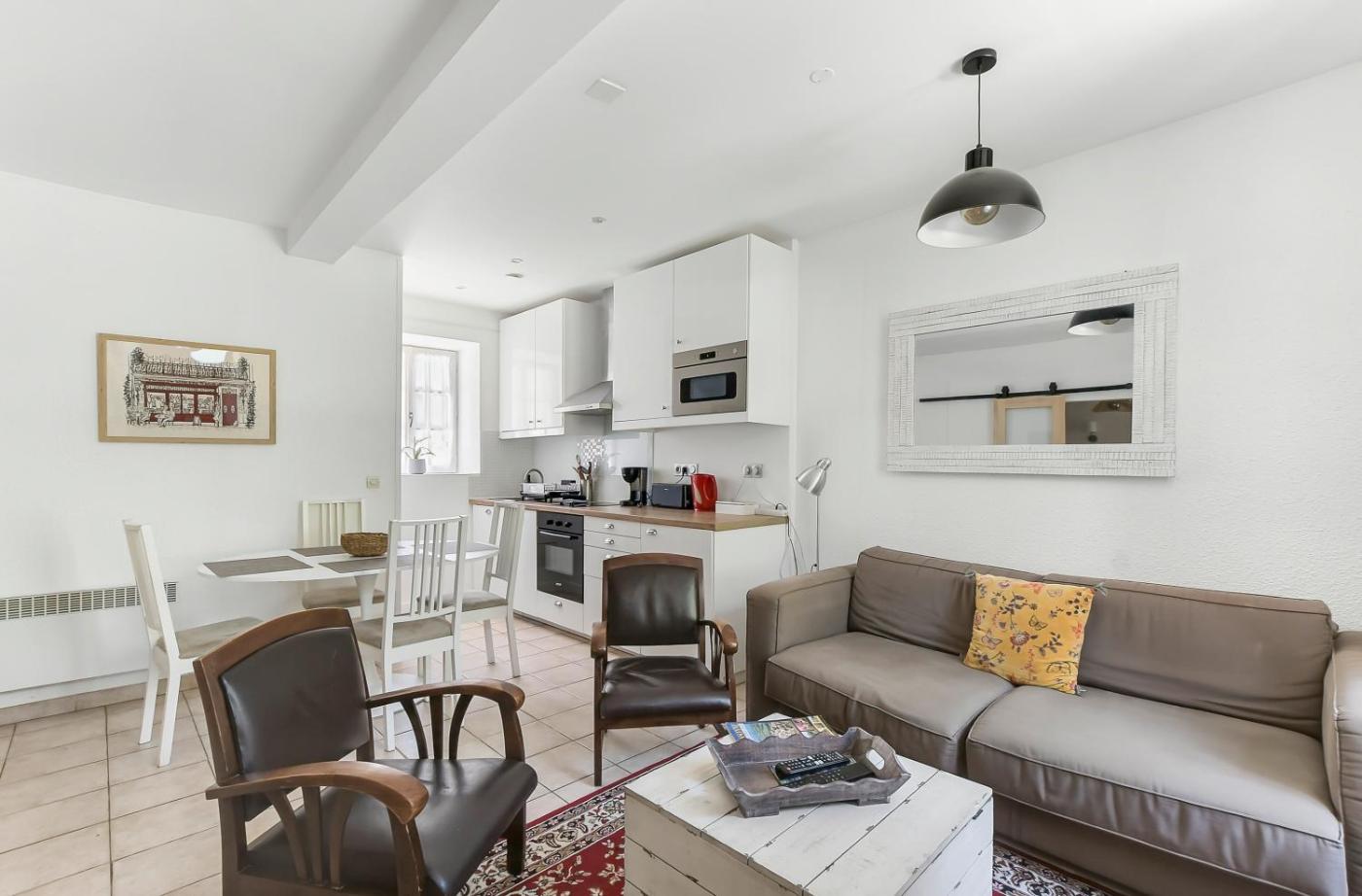 Maison 2 Chambres. Featuring a private entrance, this air-conditioned holiday home consists of 1 living room, 2 separate bedrooms and 1 bathroom with a walk-in shower and a hairdryer. Meals can be prepared in the well-fitted kitchen, which is equipped with a stovetop, a refrigerator, a dishwasher and kitchenware. The holiday home provides a washing machine, soundproof walls, a tea and coffee maker, a flat-screen TV with cable channels, as well as city views. The unit offers 3 beds.