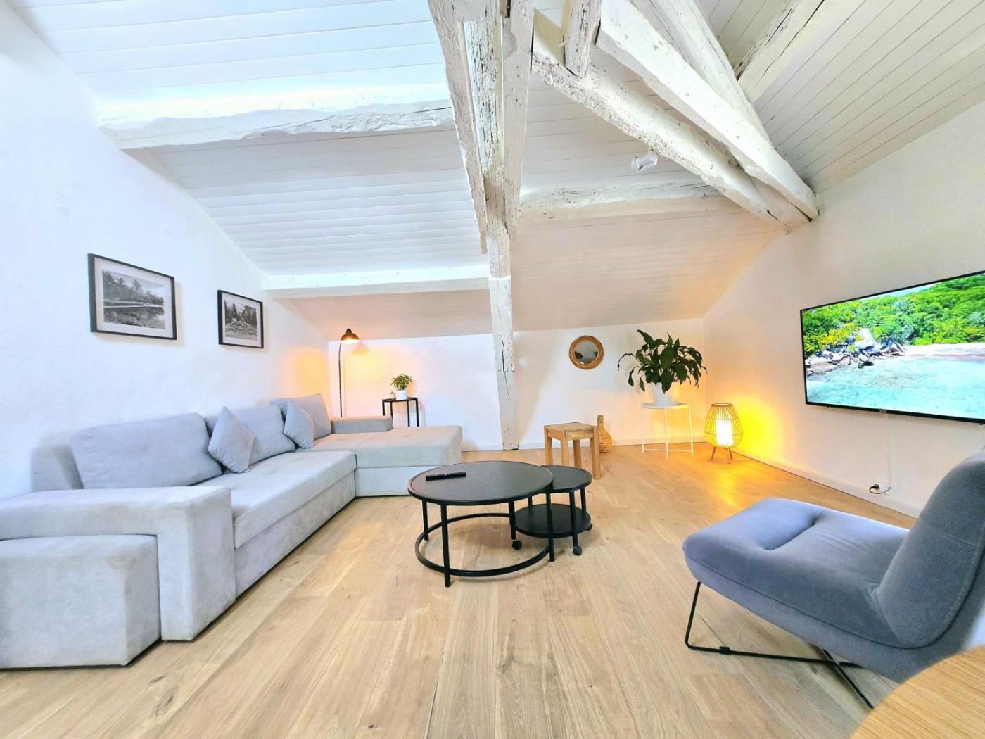 Appartement 1 Chambre. This spacious apartment consists of 1 living room, 1 separate bedroom and 1 bathroom with a shower and a hairdryer. Guests can make meals in the kitchen that is equipped with a stovetop, a refrigerator, a dishwasher and kitchenware. This apartment is air-conditioned and features a flat-screen TV, a washing machine and a coffee machine. The unit offers 1 bed.