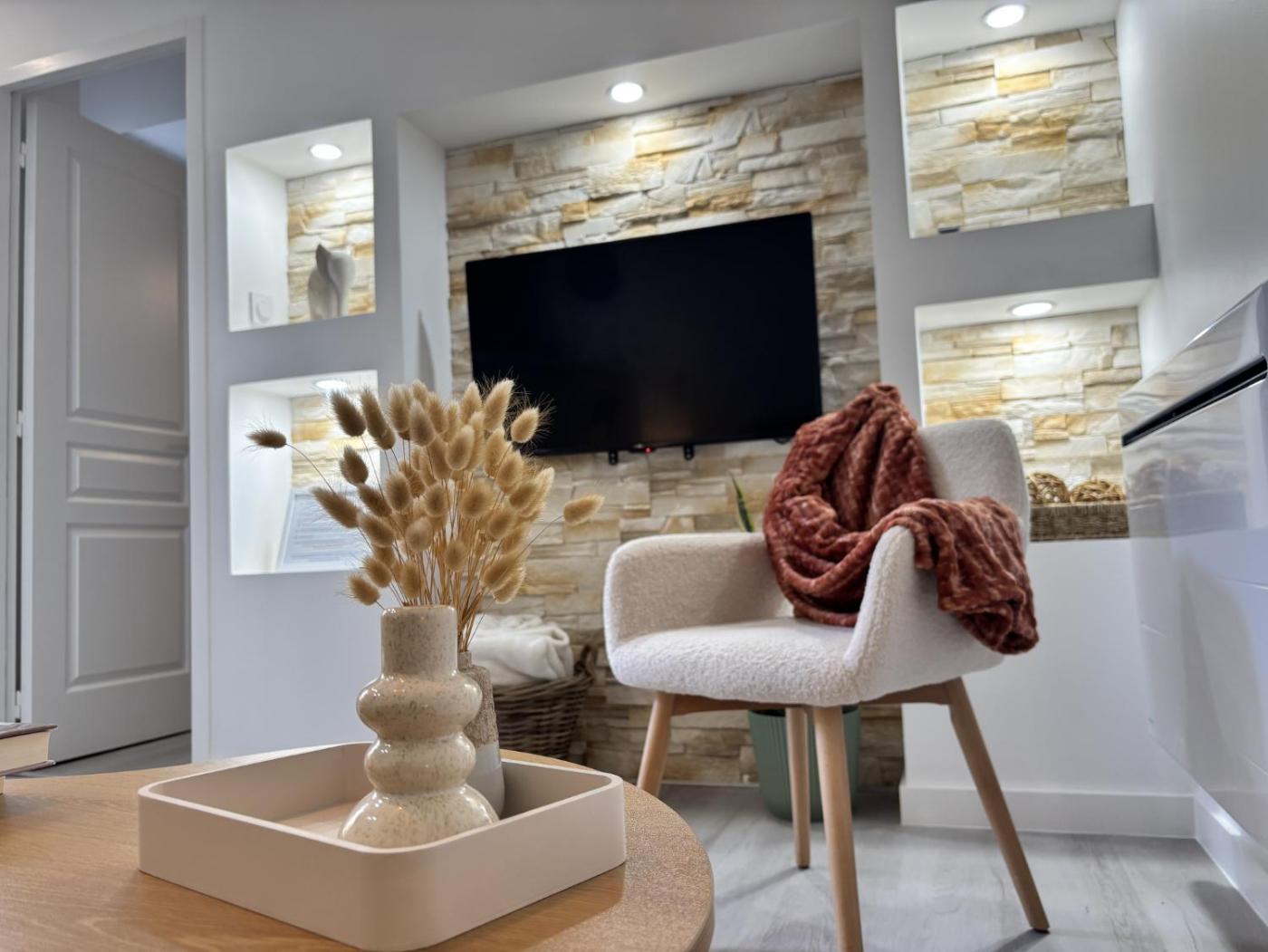 Appartement 1 Chambre avec Terrasse. Boasting a private entrance, this apartment also includes 1 bedroom, a seating area and 1 bathroom with a walk-in shower and a hairdryer. In the well-fitted kitchen, guests will find a stovetop, a refrigerator, kitchenware and an oven. Featuring a terrace with garden views, this apartment also offers a tea and coffee maker and a flat-screen TV. The unit has 1 bed.