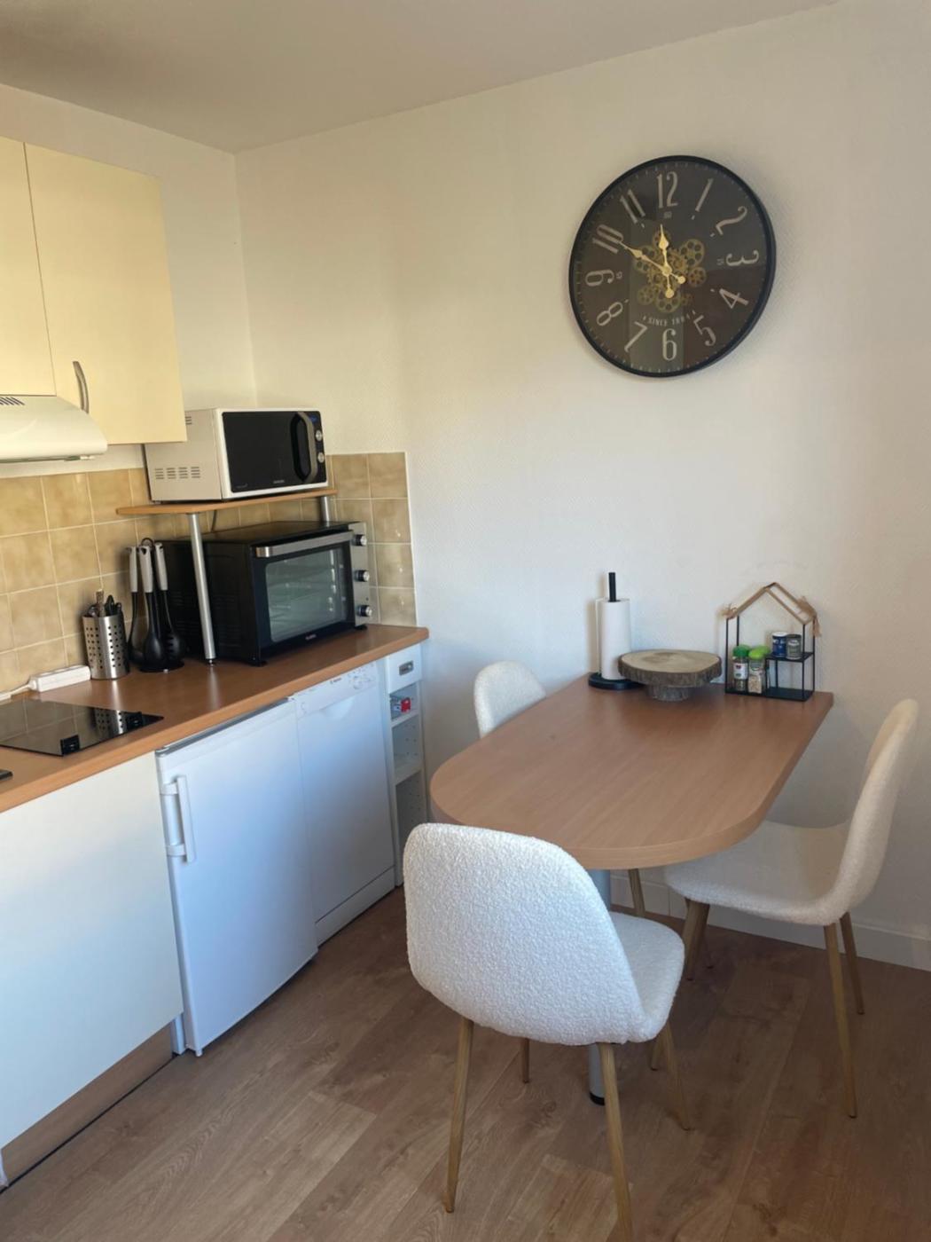 Appartement 1 Chambre. The well-fitted kitchen features a stovetop, a refrigerator, kitchenware and an oven. The apartment offers a flat-screen TV, a coffee machine, a dining area and heating. The unit offers 1 bed.