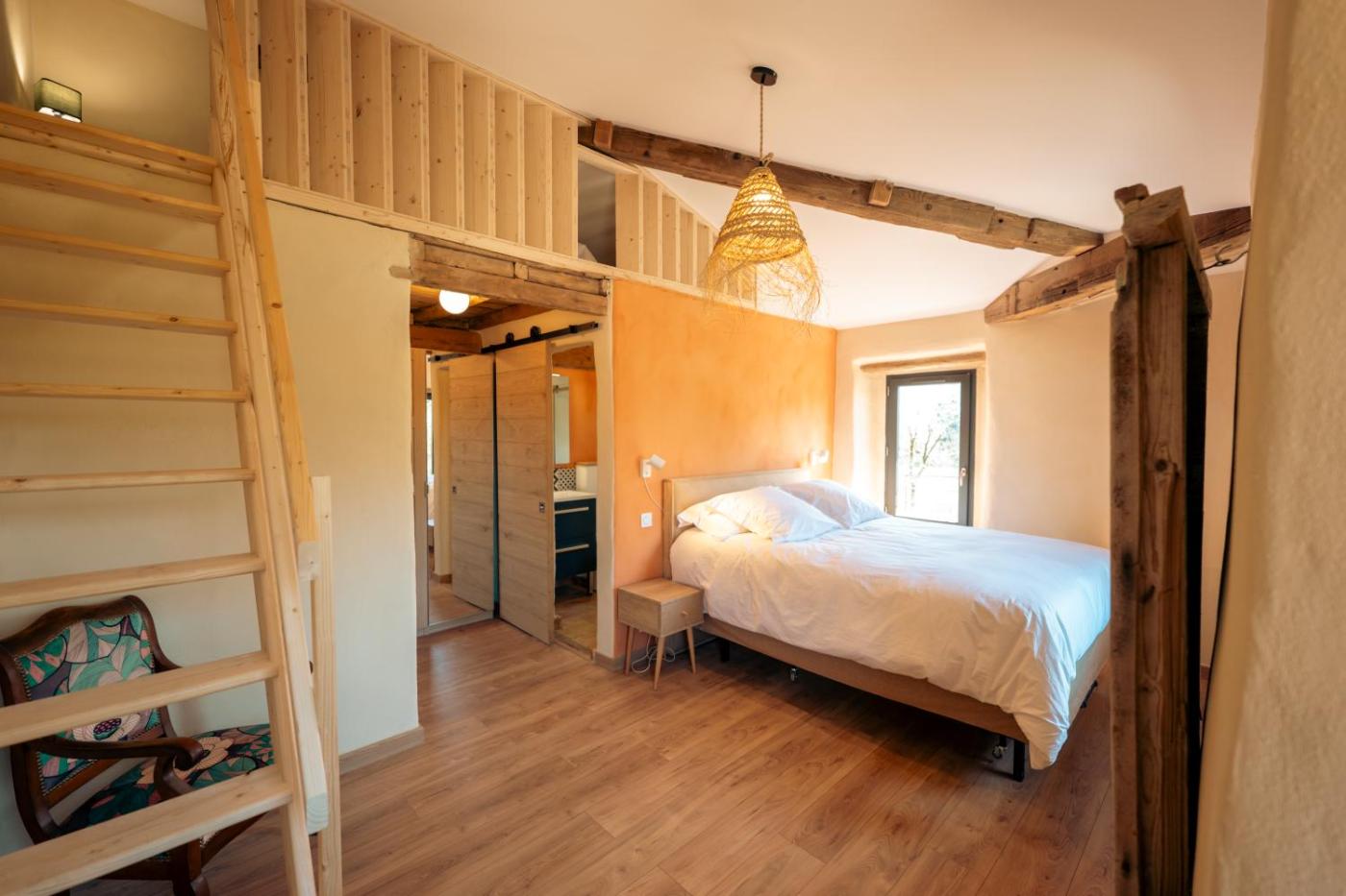 Chambre Lit Queen-Size - Vue sur Piscine. This double rooms standout features are the pool with a view and fireplace. Guests will find a stovetop, a refrigerator, a dishwasher and kitchenware in the kitchen. The double room also provides guests with a barbecue. The double room provides a washing machine, a coffee machine, a terrace with garden views as well as a private bathroom featuring a shower. The unit offers 2 beds.