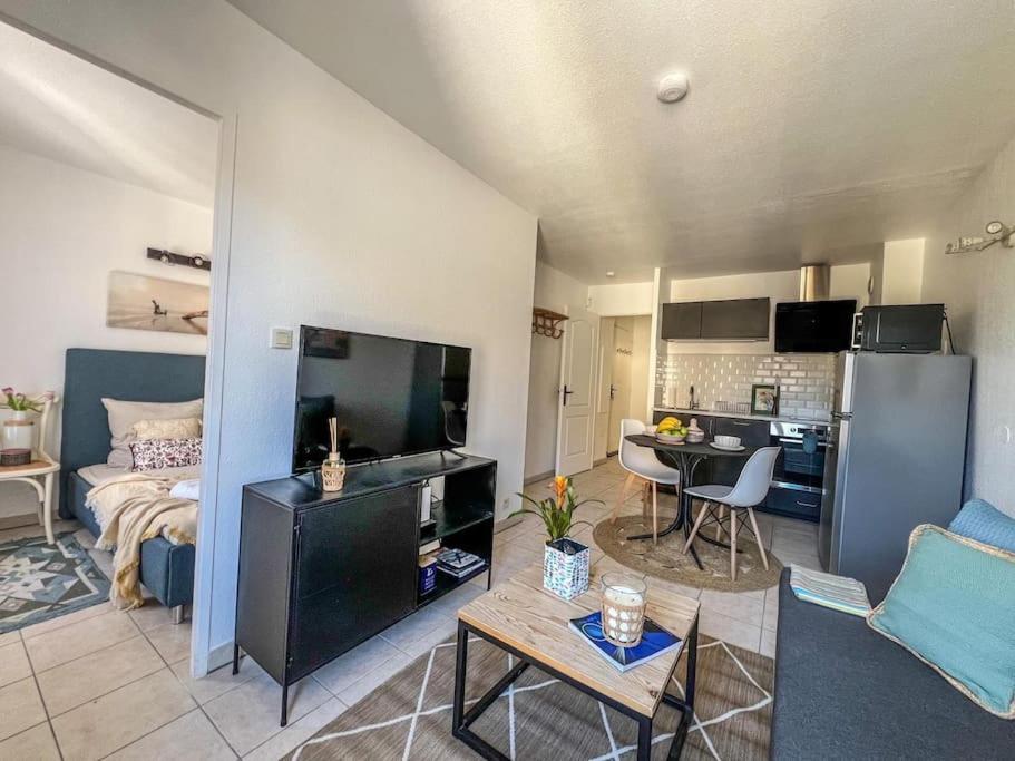 Appartement 1 Chambre. The well-fitted kitchen features a stovetop, a refrigerator, a dishwasher and kitchenware. The apartment offers a washing machine, a tea and coffee maker, a dining area, a dressing room, as well as a flat-screen TV. The unit offers 2 beds.