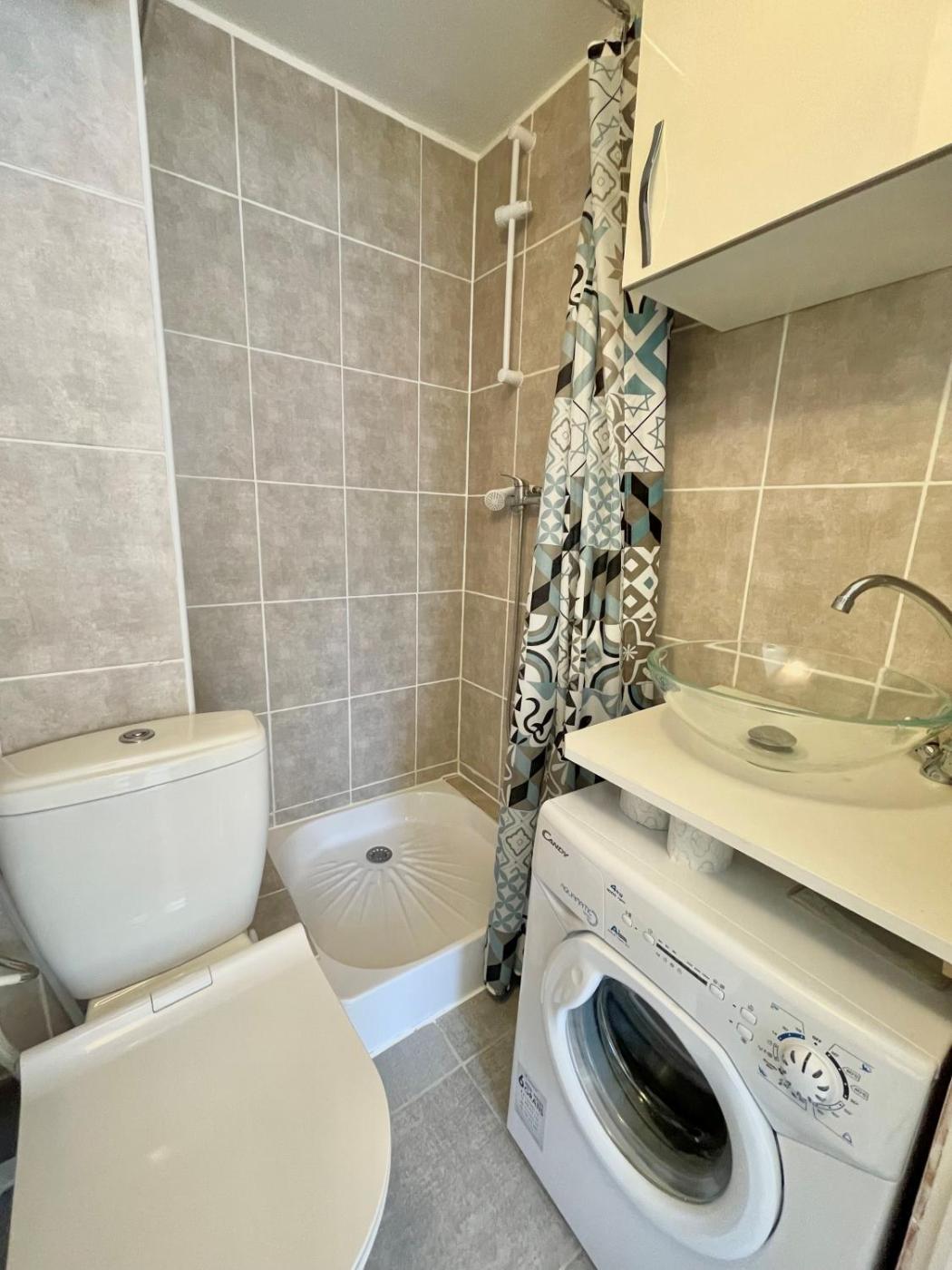 Appartement 1 Chambre. This apartment features 1 living room, 1 separate bedroom and 1 bathroom with a shower and a hairdryer. Guests can make meals in the kitchen that features a stovetop, a refrigerator, kitchenware and a microwave. Boasting a terrace with garden views, this apartment also features a washing machine and a TV. The unit has 2 beds.