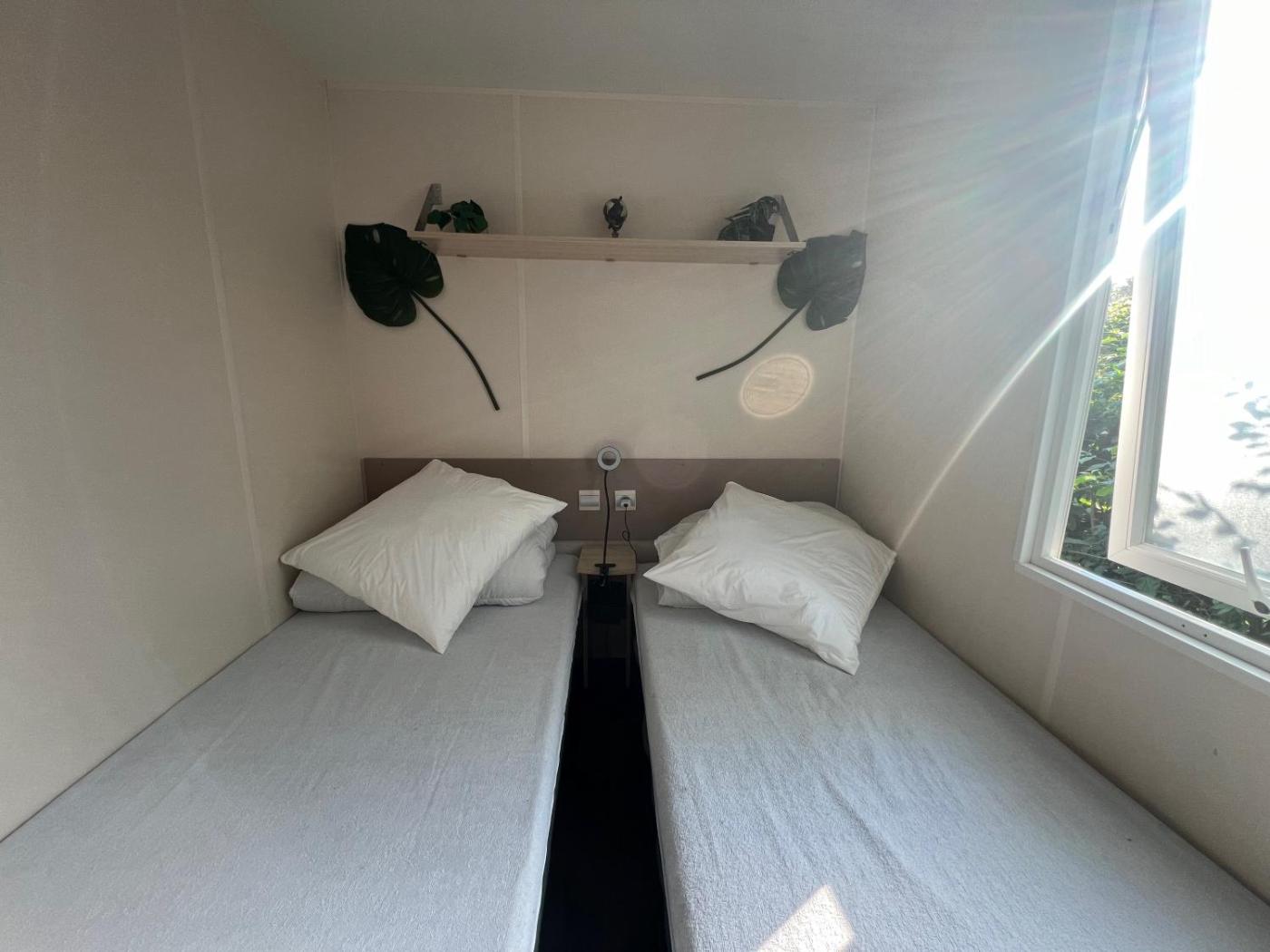 Mobile Home. The air-conditioned mobile home has 3 bedrooms and 1 bathroom with a shower and a hairdryer. Guests will find a stovetop, a refrigerator, a dishwasher and kitchenware in the fully equipped kitchenette. The mobile home also includes a barbecue. Boasting a terrace with garden views, this mobile home also features a tea and coffee maker and a flat-screen TV. The unit has 5 beds.