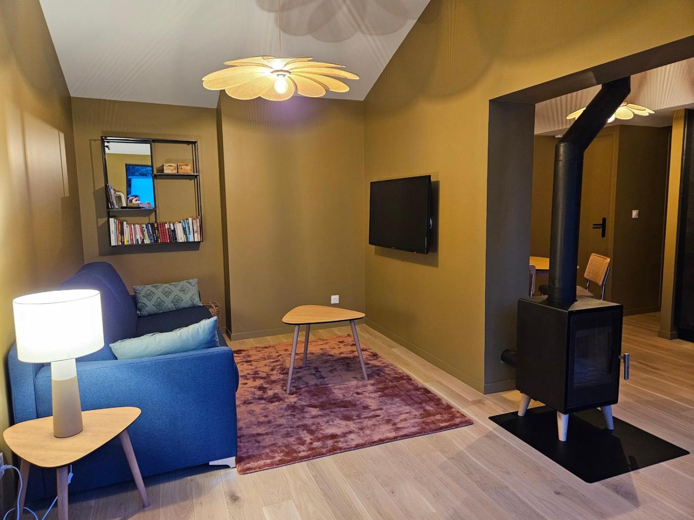 Maison 1 Chambre. The fireplace is the standout feature of this holiday home. Boasting a private entrance, this air-conditioned holiday home comes with 1 living room, 1 separate bedroom and 1 bathroom with a shower and a hairdryer. Guests will find a stovetop, a refrigerator, a dishwasher and kitchenware in the well-fitted kitchen. The holiday home also includes a barbecue. Featuring a terrace with garden views, this holiday home also features a washing machine and a flat-screen TV. The unit has 2 beds.