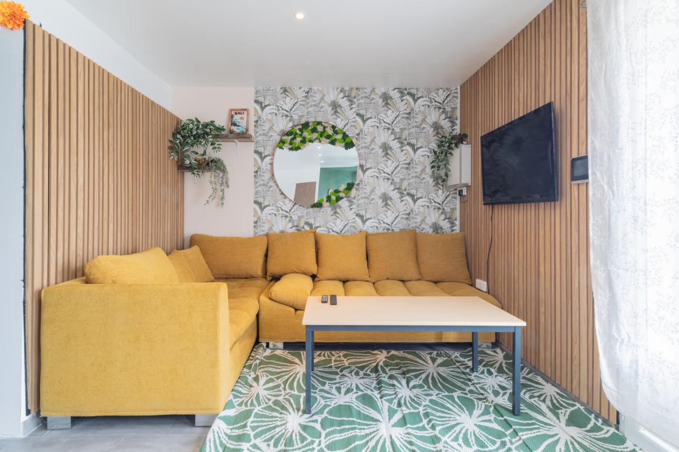 Proposant un accès direct à une terrasse avec vue sur le jardin, cette maison de vacances avec climatisation comporte 1 chambre et une cuisine entièrement équipée. Une télévision à écran plat est à votre disposition.