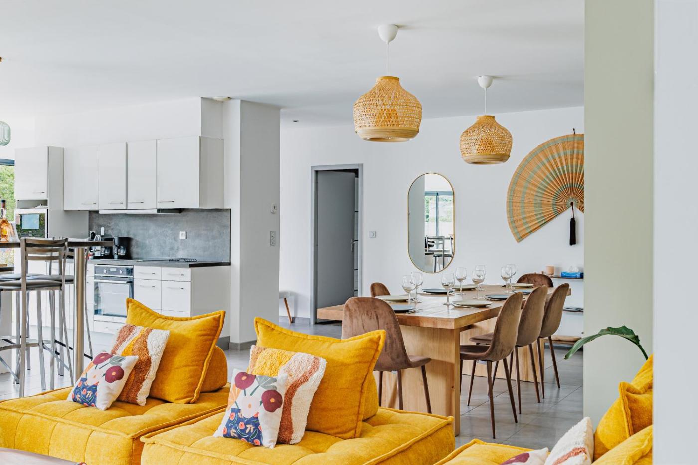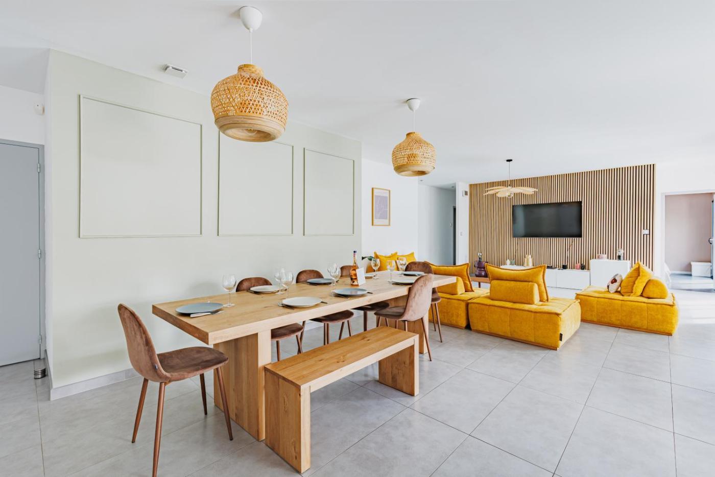 Villa avec Piscine Privée. Guests will have a special experience as the villa features a private pool. This villa consists of 1 living room, 5 separate bedrooms and 2 bathrooms with a hairdryer. The villas kitchen, which features a dishwasher and an oven, is available for cooking and storing food. The villa provides a washing machine, a tea and coffee maker, a high chair for children, heating, as well as a flat-screen TV. The unit offers 7 beds.