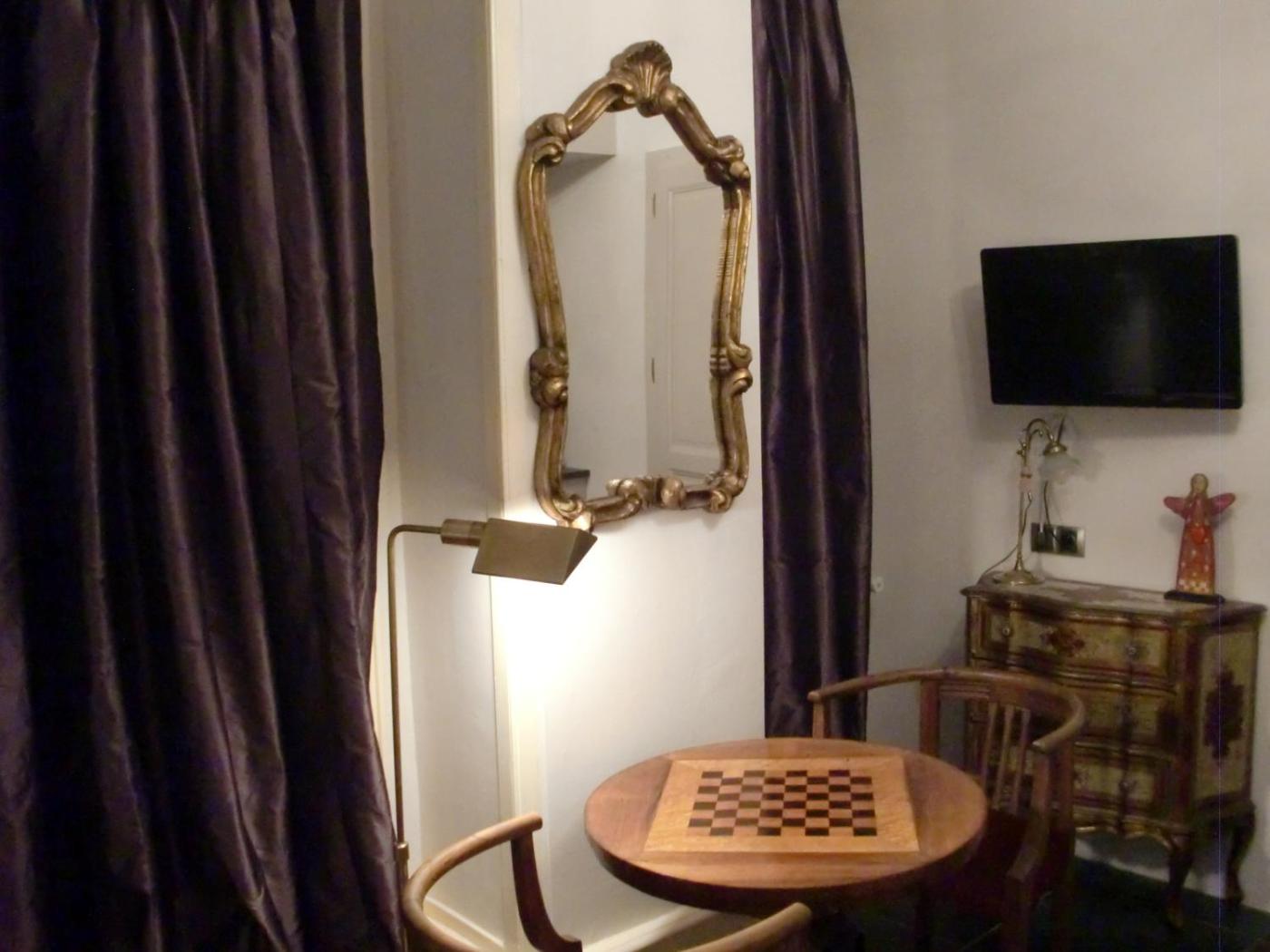 Chambre Double. The double room offers a private entrance, a minibar, as well as a private bathroom boasting a shower and a hairdryer. In the well-fitted kitchenette, guests will find a refrigerator, kitchenware, a microwave and a toaster. The double room provides a flat-screen TV, a tea and coffee maker, a dining area, a wardrobe as well as city views. The unit has 1 bed.