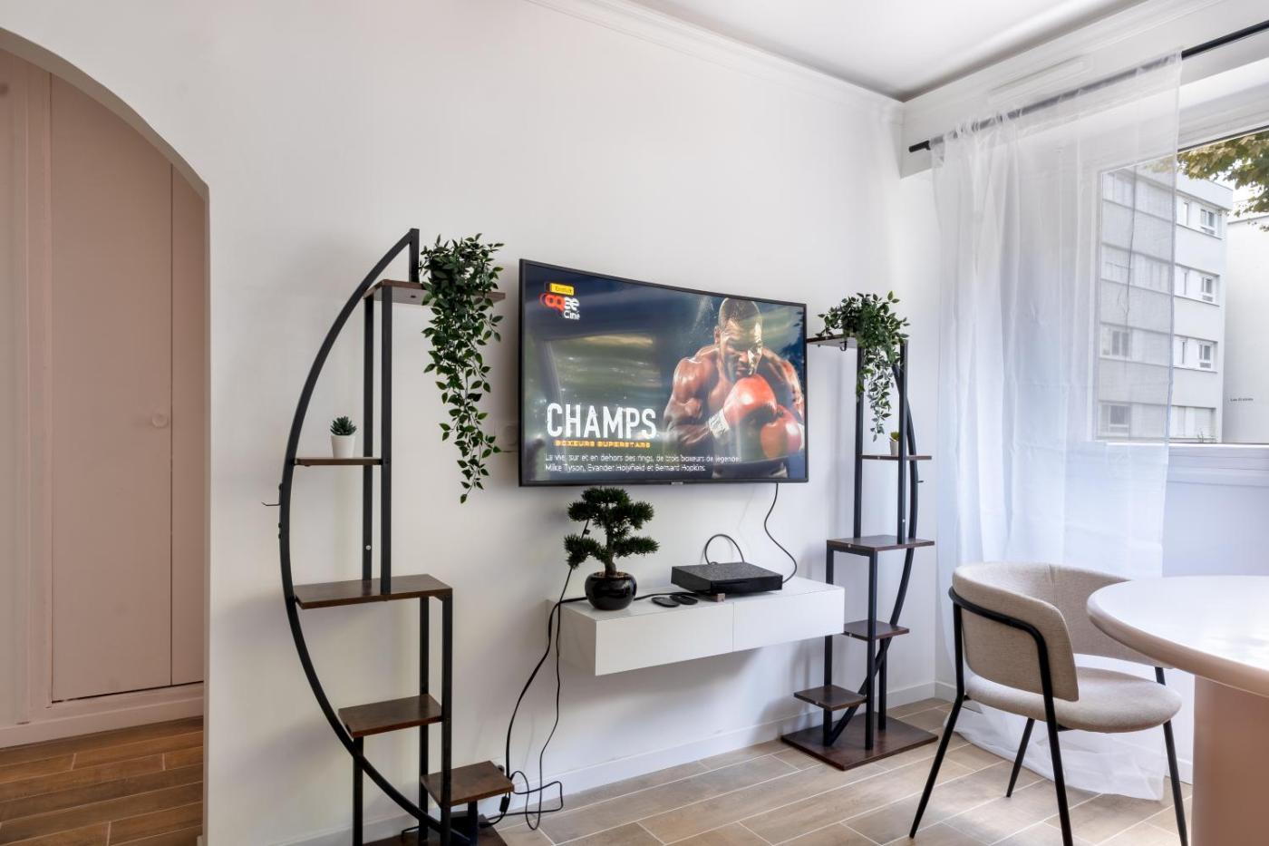 Appartement 1 Chambre. The hot tub and spa bath are the standout features of this apartment. This apartment is comprised of 1 bedroom, a seating area with a sofa and 1 bathroom with a hairdryer. Guests can make meals in the kitchen that is fitted with a stovetop, a refrigerator, a dishwasher and kitchenware. The apartment offers a washing machine, a coffee machine, a dining area, a flat-screen TV, as well as a quiet street view. The unit offers 1 bed.