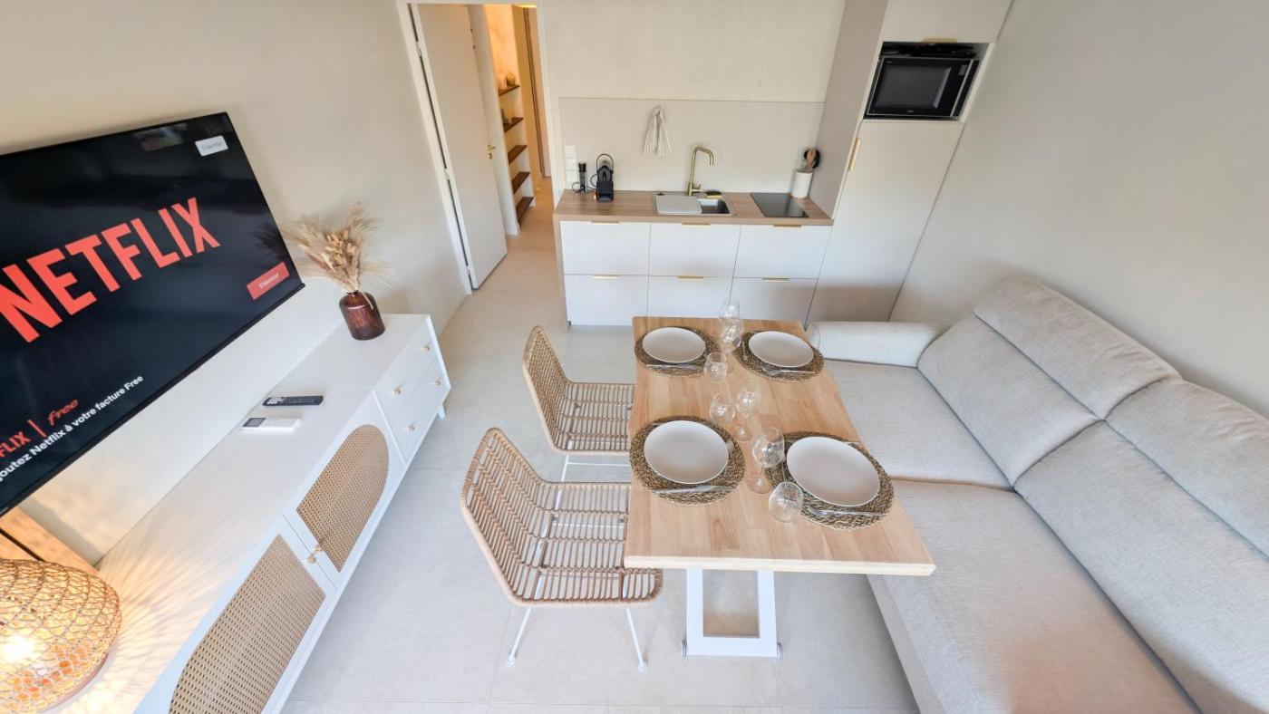 Appartement 1 Chambre avec Balcon et Vue sur Mer. Featuring a private entrance, this air-conditioned apartment consists of 1 living room, 1 separate bedroom and 1 bathroom with a shower and a hairdryer. Meals can be prepared in the kitchen, which is equipped with a stovetop, a refrigerator, kitchenware and a microwave. Boasting a terrace with sea views, this apartment also provides a washing machine and a flat-screen TV. The unit offers 2 beds.