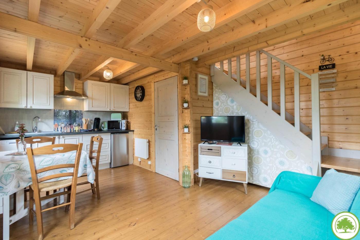 Chalet 1 Chambre. Boasting a private entrance, this air-conditioned chalet includes a kitchen, 1 bedroom and 1 bathroom with a shower and a hairdryer. Guests will find a stovetop, a refrigerator, a dishwasher and kitchenware in the kitchen. The chalet also features a barbecue. Featuring a terrace with garden views, this chalet also offers a tea and coffee maker and a flat-screen TV. The unit has 2 beds.