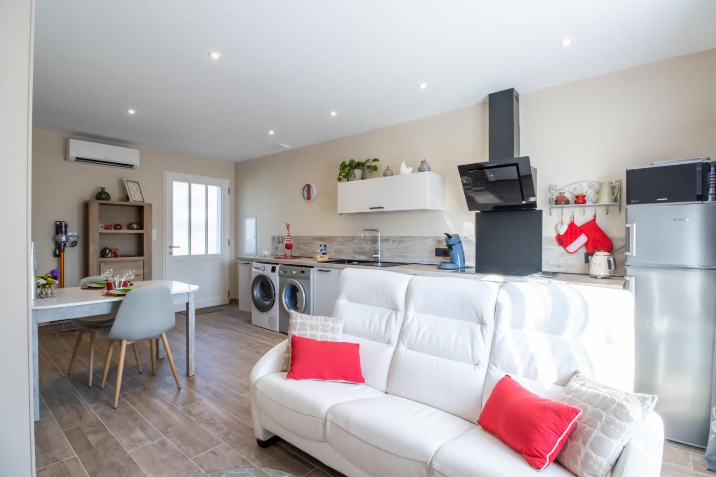Maison 1 Chambre. Boasting a private entrance, this air-conditioned holiday home comes with a kitchen, 1 bedroom and 1 bathroom with a shower and a hairdryer. Guests will find a dishwasher, kitchenware, an oven and a microwave in the well-equipped kitchen. The holiday home also includes a barbecue. Featuring a terrace with garden views, this holiday home also features a washing machine and a TV with streaming services. The unit has 1 bed.