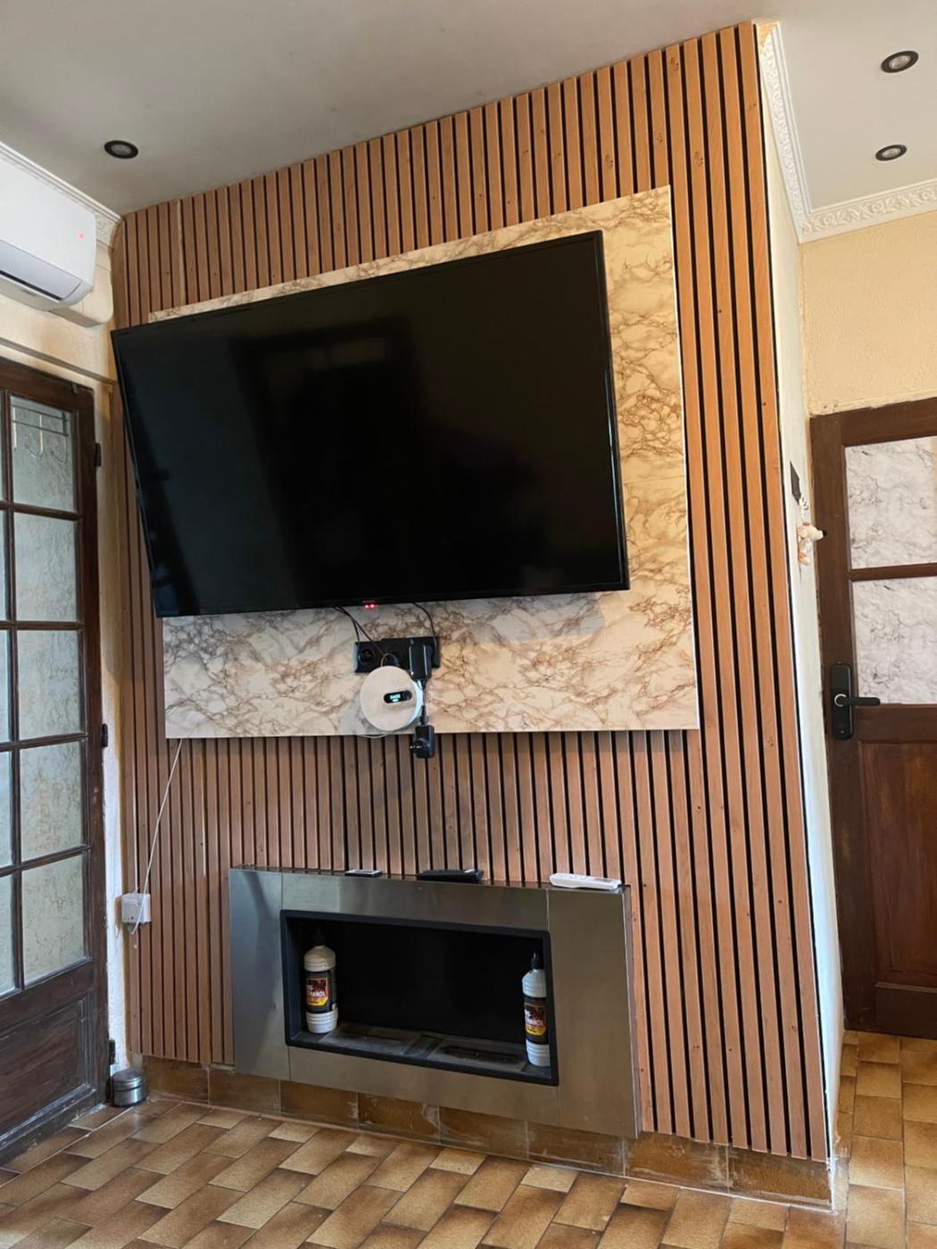 Cet appartement en rez-de-chaussée comporte 1 chambre, une cuisine bien équipée avec un réfrigérateur et un four, un salon et une télévision à écran plat.
