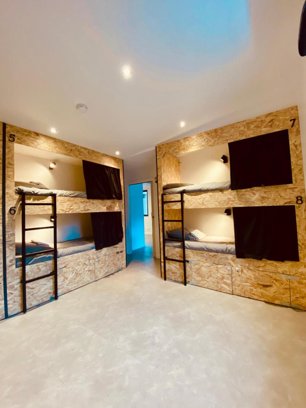 Lit dans Dortoir Mixte de 8 Lits. This dormitory rooms standout feature is the fireplace. The dormitory room offers soundproof walls, a tea and coffee maker, as well as a shared bathroom boasting a shower and a hairdryer. The kitchen has a stovetop, a refrigerator and kitchenware. The dormitory room provides a seating area, a dining area, as well as a terrace and an outdoor dining area. The unit has 5 beds.