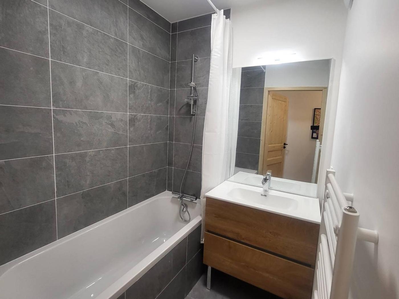 Appartement. Boasting a private entrance, this apartment includes 1 living room, 2 separate bedrooms and 2 bathrooms with a bath and a shower. In the well-equipped kitchen, guests will find a stovetop, a refrigerator, a dishwasher and kitchenware. The apartment offers a TV, a coffee machine, a dining area and heating. The unit has 4 beds.