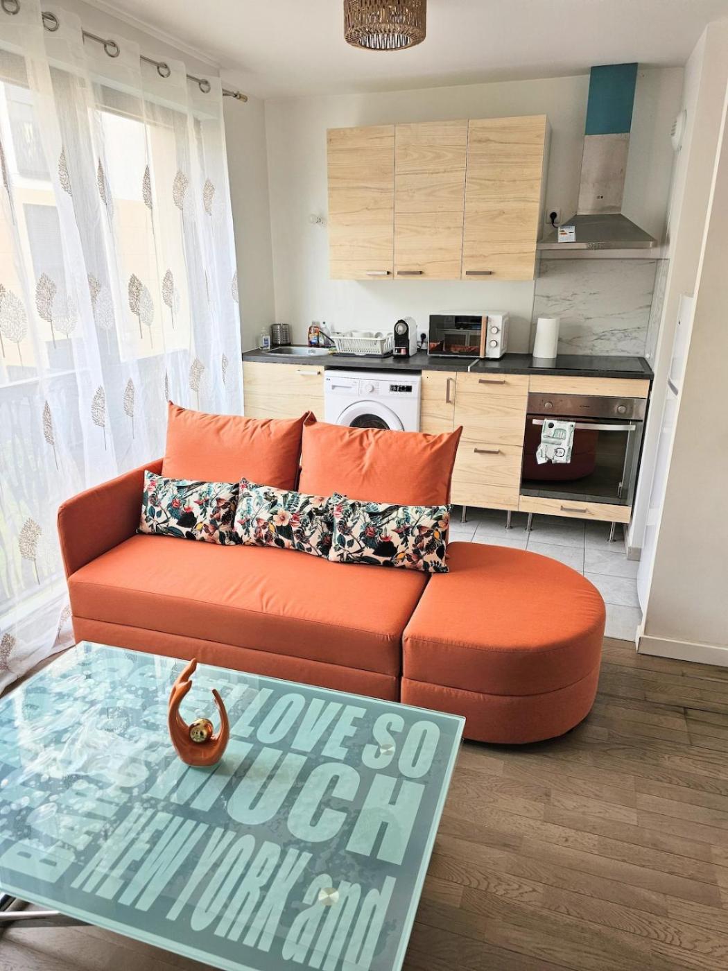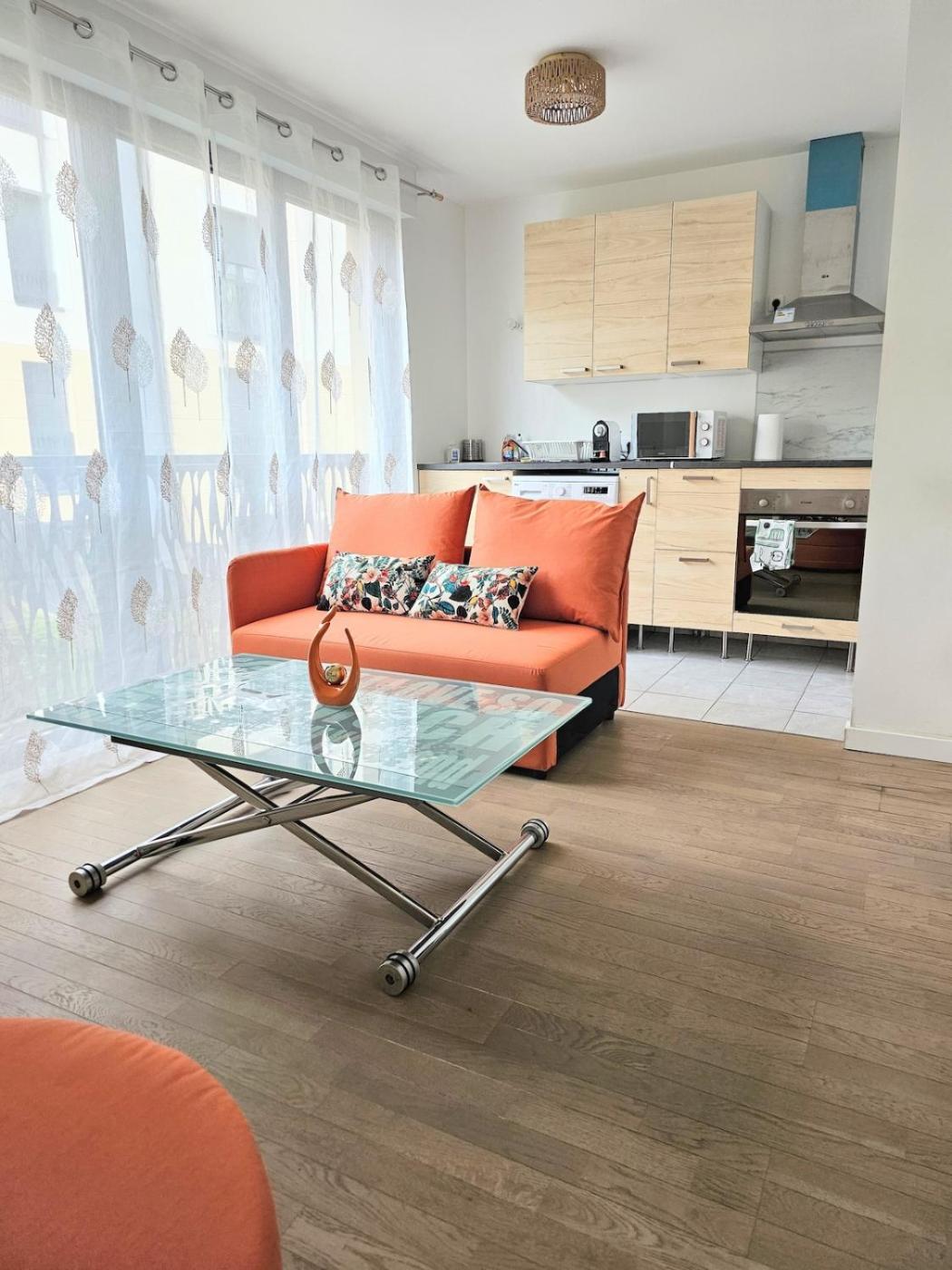 Appartement 1 Chambre. This apartment comprises 1 living room, 1 separate bedroom and 1 bathroom with a shower and a hairdryer. In the fully equipped kitchen, guests will find a stovetop, a refrigerator, kitchenware and a microwave. The apartment features parquet floors, a seating area with a flat-screen TV with streaming services, a washing machine, soundproof walls, as well as a tea and coffee maker. The unit offers 2 beds.